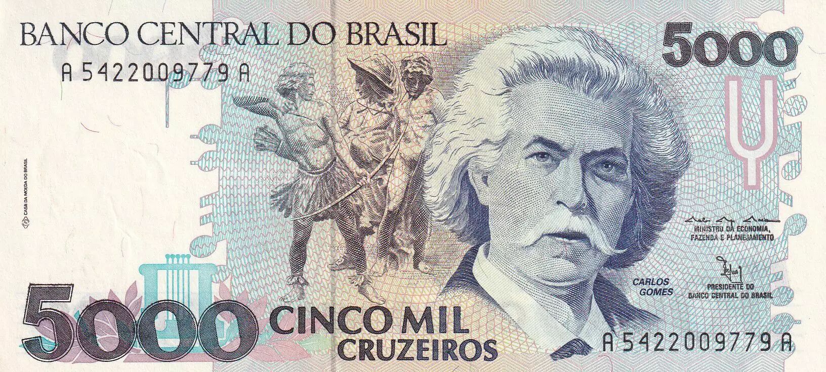 Accueil > Archivage > Brésil 5000 Cruzeiros - Carlos Gomes - ND (1992) - Série AA - P.232b