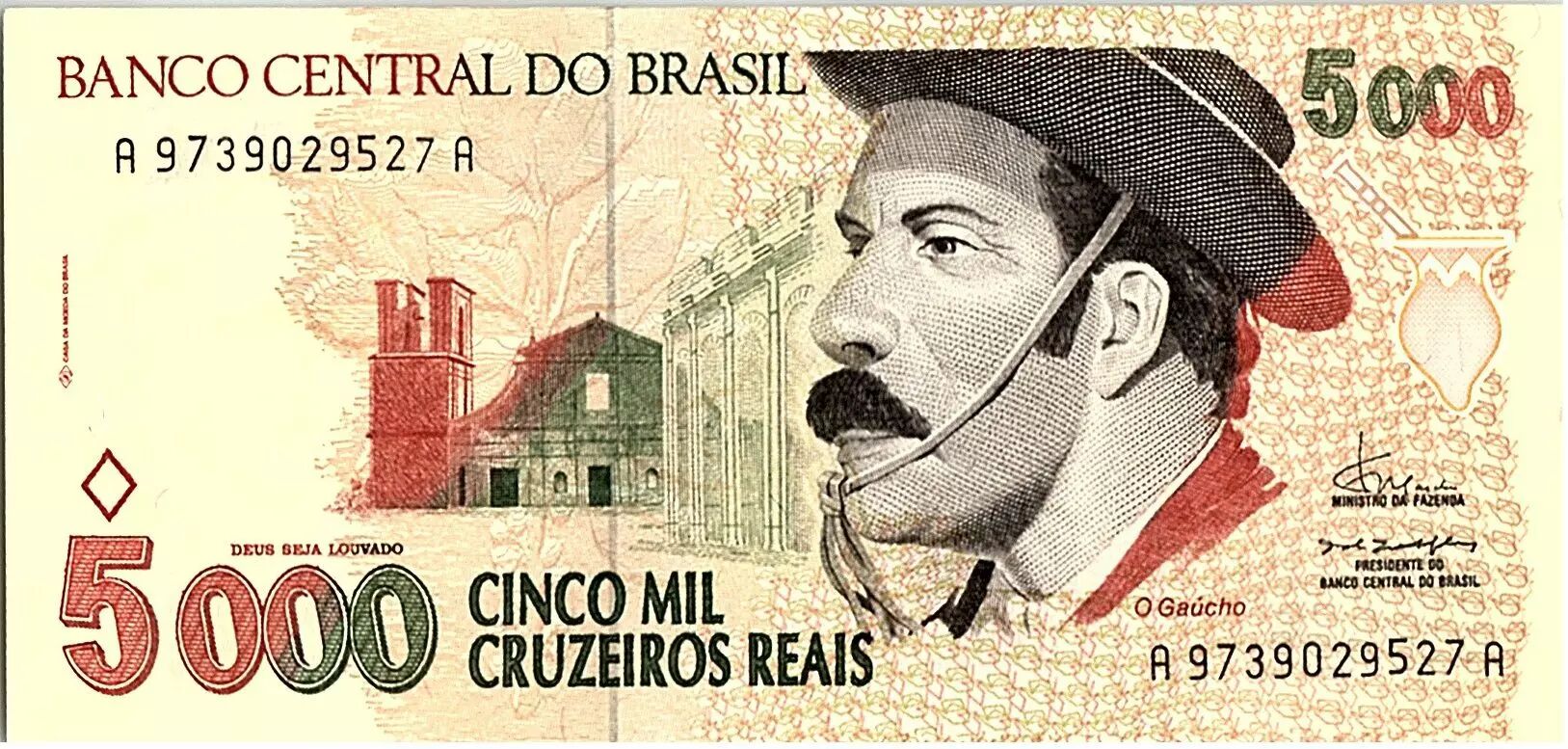 Billet Brésil 5000 Cruzeiros Reais, Gaucho - 1993