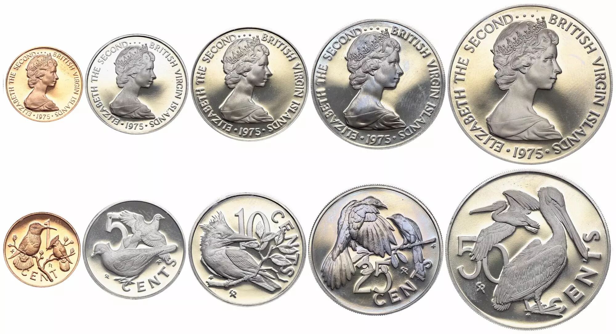 Home > > British Virgin Islands Set of 5 coins - 1 cent to 50 cents - 1975 - Proof