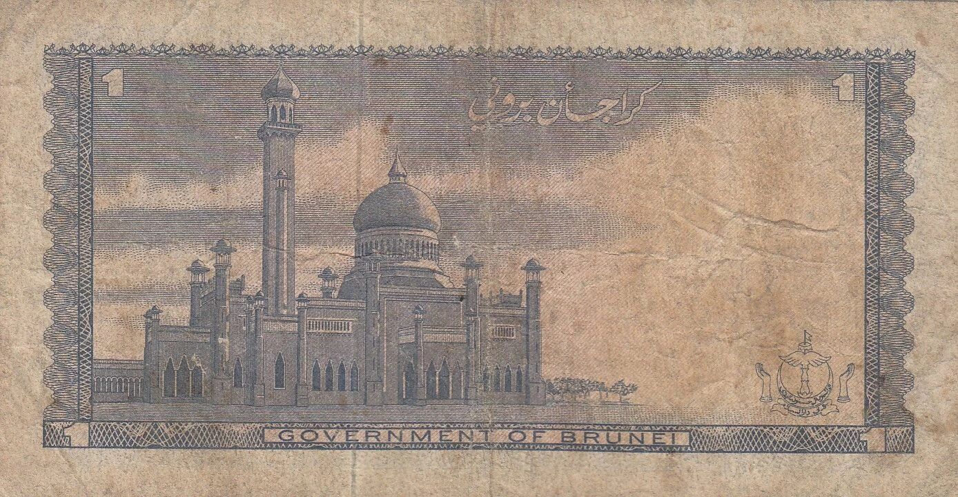 Ce billet de banque est originaire du Brunei, il a été émis en 1967. Il s'agit d'un billet de 1 ringgit, émis sous le règne du sultan Omar Ali Saiffudin III. Le billet appartient à la série A/4.