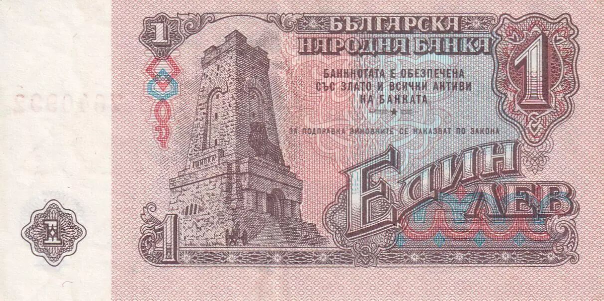 Home > > Bulgaria 1 Lev - Coat of Arms - Monument - 1974 - P.93b