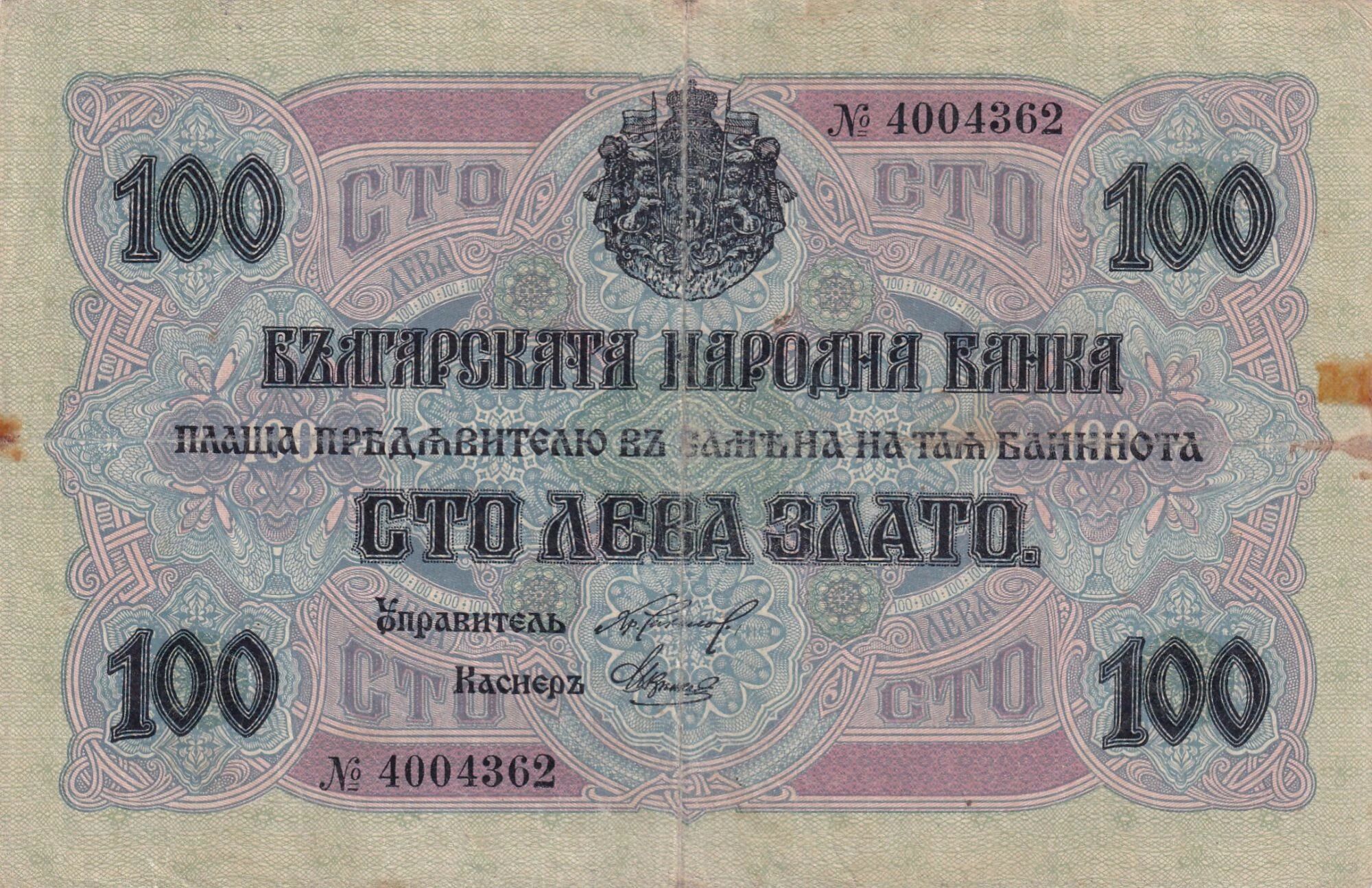 This 100 leva zlato banknote is a tangible testimony to Bulgaria's financial history at the beginning of the 20th century. It offers a glimpse into the symbols and motifs used to represent value and authority at that time.