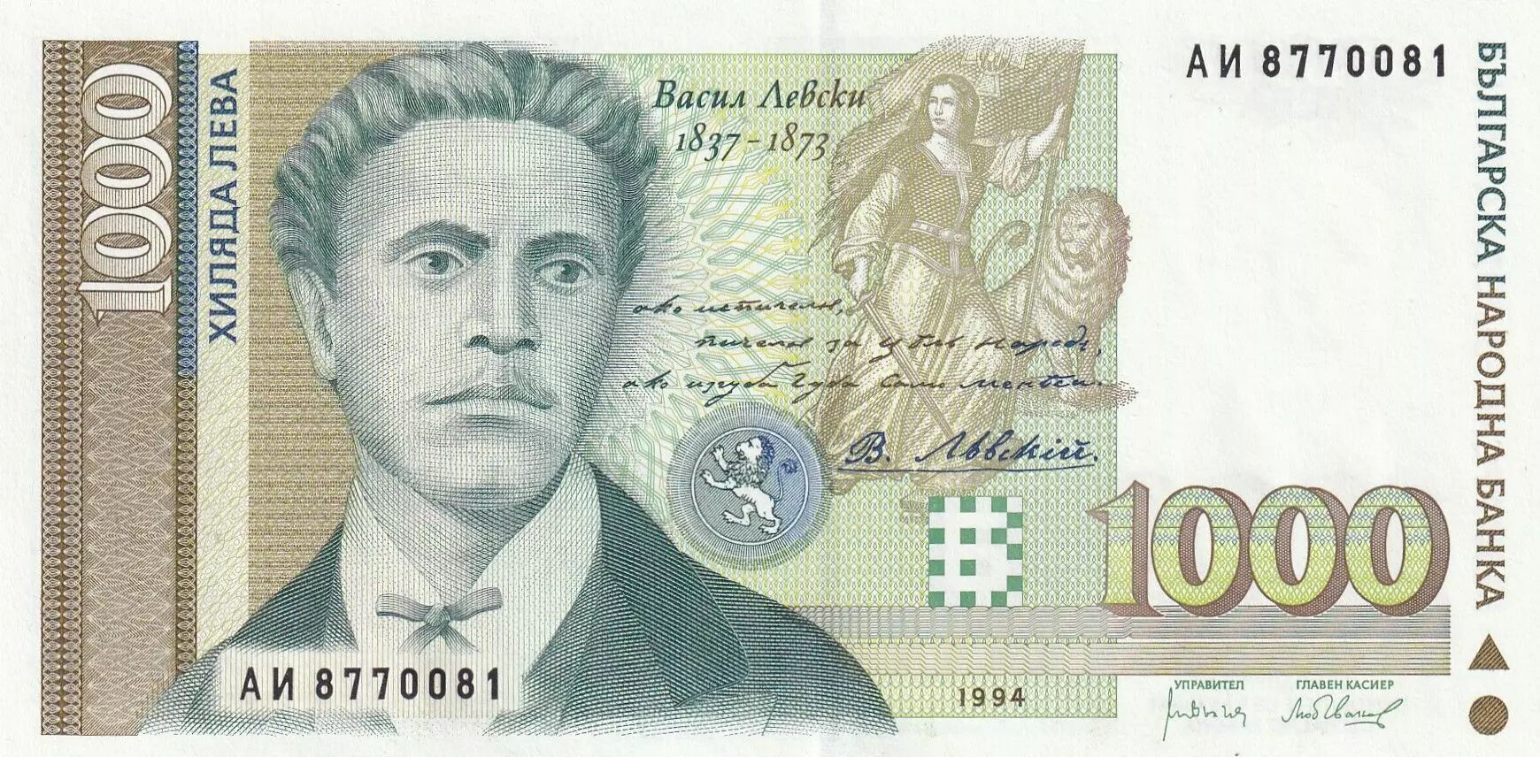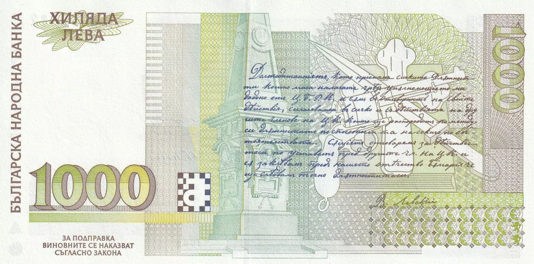 Home > World Banknotes > European Banknotes > Bulgaria > Bulgaria 1000 Leva V.Levski, monument - 1994