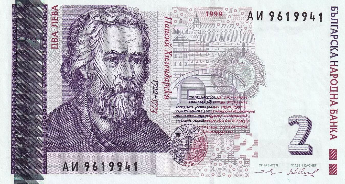 Banknote Bulgaria 2 Leva - Paisii Hilendarski - Lion - 1999 - P.115a