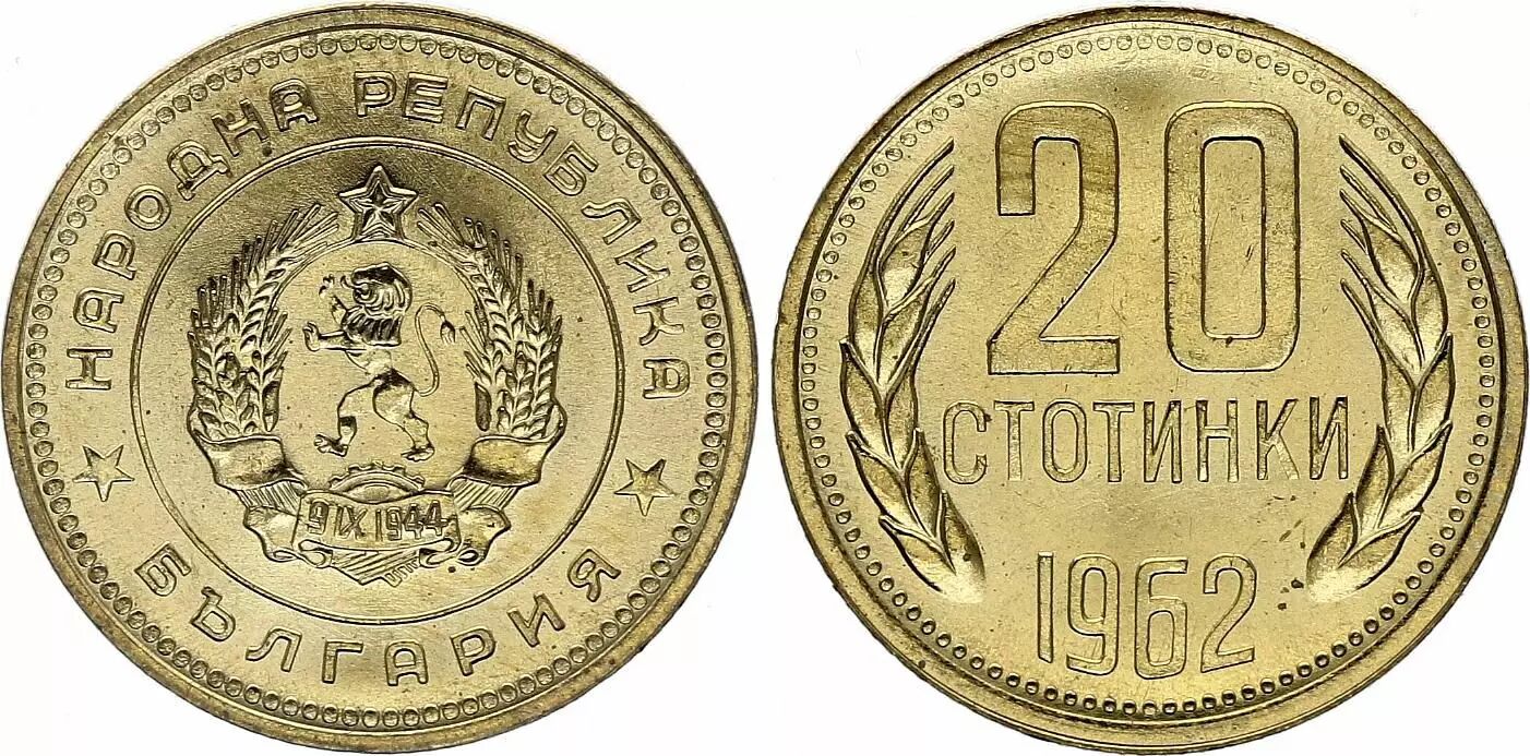 Home > World Coins > European Currencies > Bulgaria > Bulgaria 20 Stotinki Lion - 1962