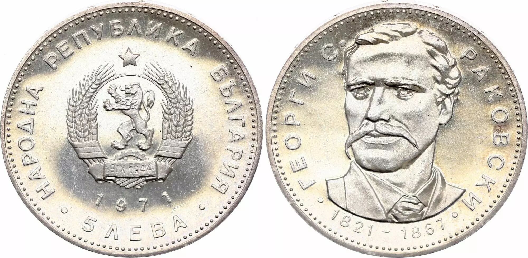 Home > > Bulgaria 5 Leva - 150 years since the birth of Georgi S. Rakovski - 1971 - Silver