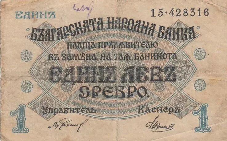 Billet Bulgarie 1 Lev Srebro - ND(1916) - Série 15.428316 - P.14b
