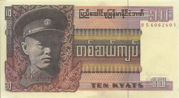 Home > World Banknotes > Asian Banknotes > Burma (Myanmar) > Burma 10 Kyats General Aun San - 1973