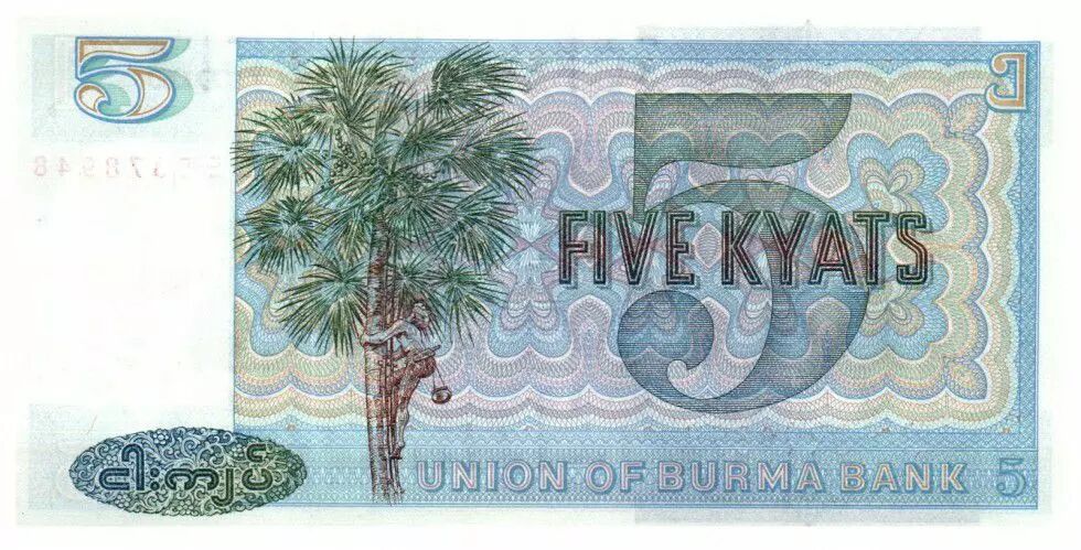 General Aun San - Palm tree 1973- Serial JE Out of bundle, consecutive numbers possibilityIssuing date : 1973