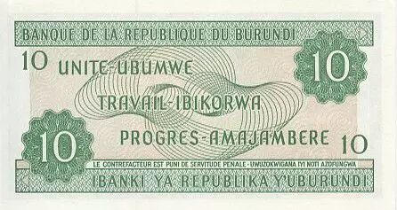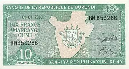Billet Burundi 10 Francs 2003 - Carte du Burundi