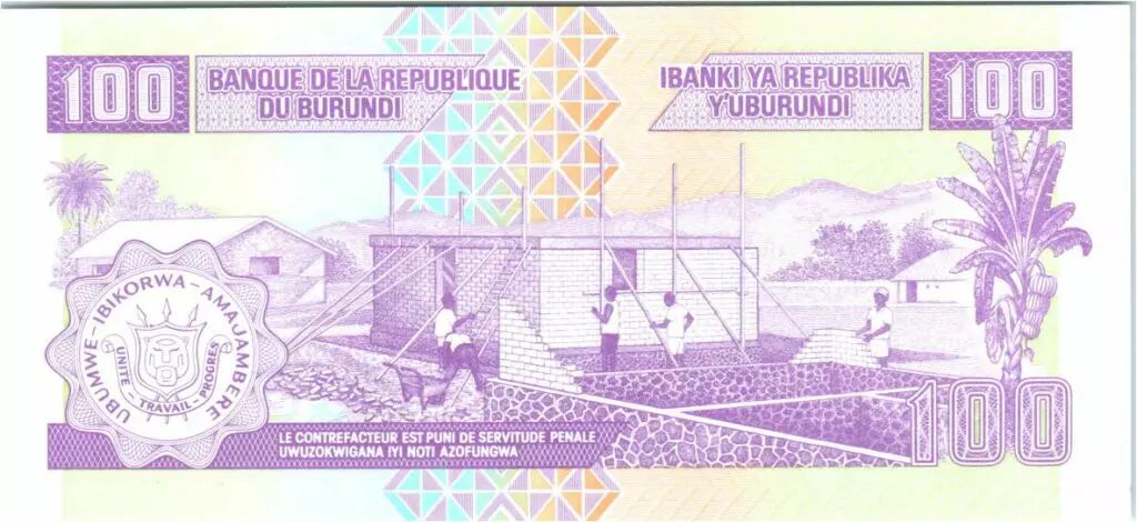 Billet Burundi 100 Francs 2001 - Prince Rwagasore - Construction de maison