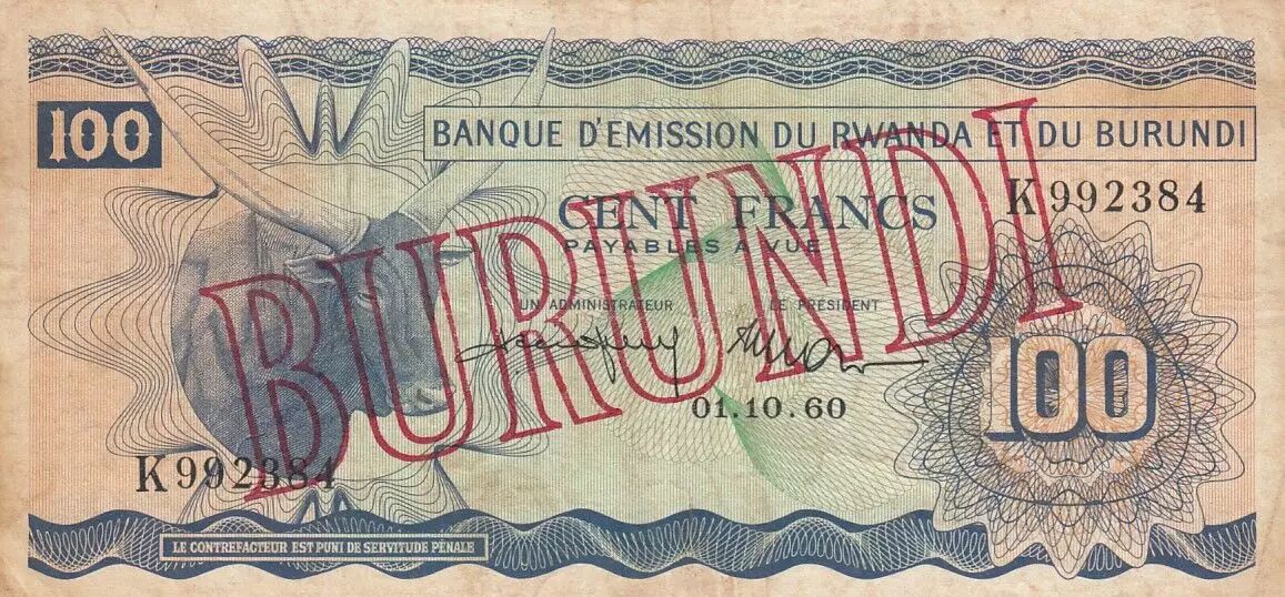 Home > > Burundi 100 Francs - Overprint Burundi - 1960 (1964)