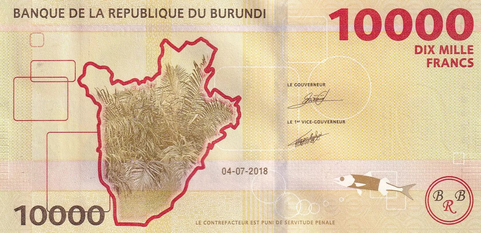 Banknote Burundi 10000 Francs - Presidents, hippo - Map of Burundi - 2018 - Serial EH - P.54b