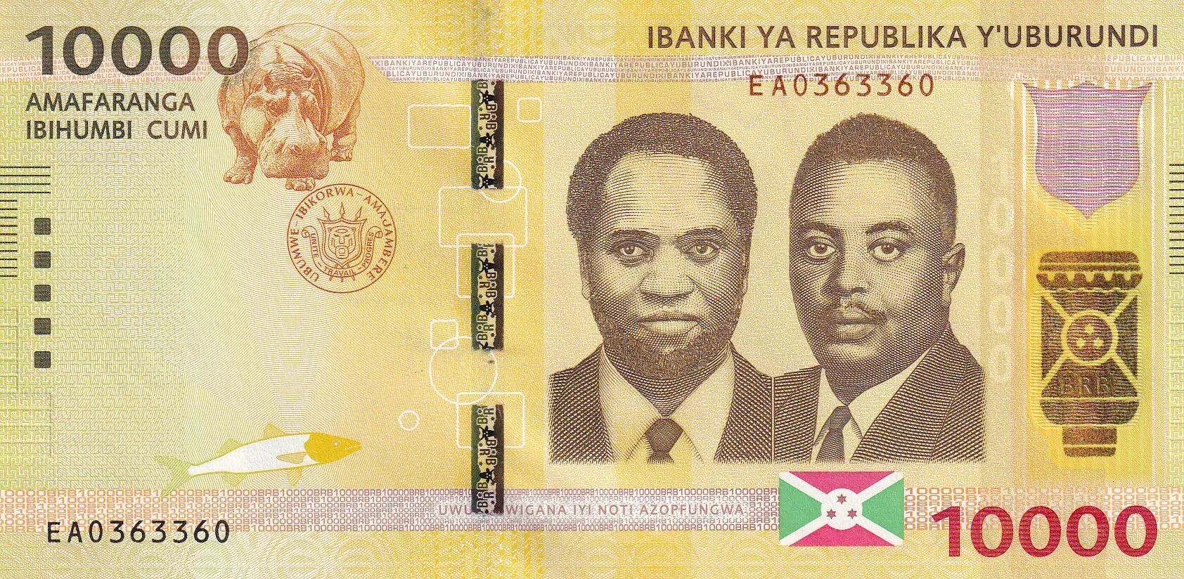 Accueil > Archivage > Burundi 10000 Francs - Présidents, hippopotame - Carte du Burundi - 2015 - P.54