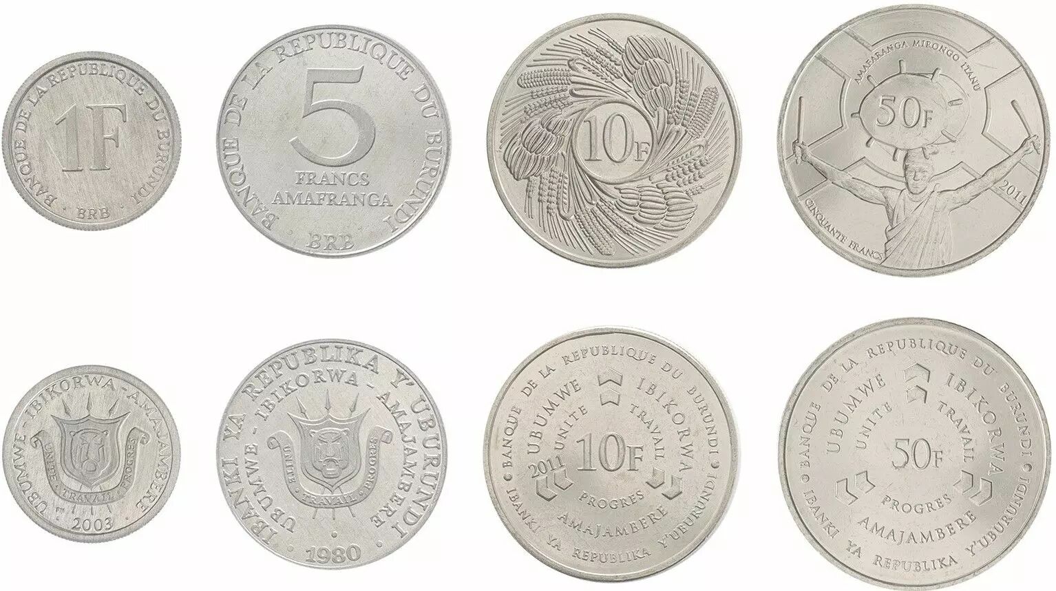 1,5,10 et 50 francs Série de 4 Monnaies Burundi - 1980-2011 - SPL