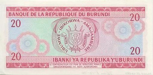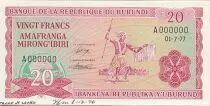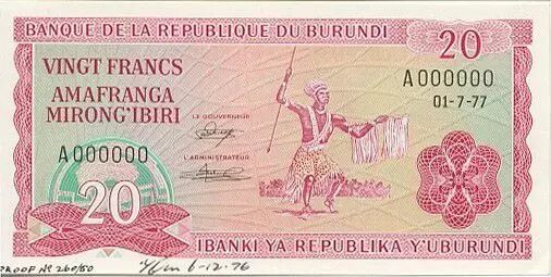 Billet Burundi 20 Francs 1977 - Guerrier- Epreuve, Proof datée 6-12-1976 - Série A 000000