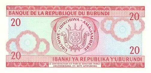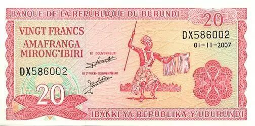 Billet Burundi 20 Francs 2007 - Guerrier Burundais
