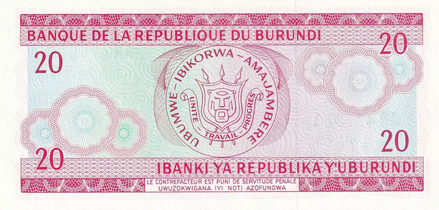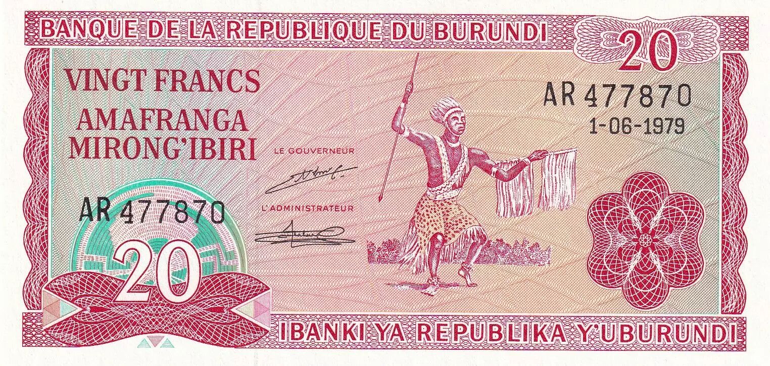 Billet Burundi 20 Francs - Guerrier - 1979 - Série AR - P.27a