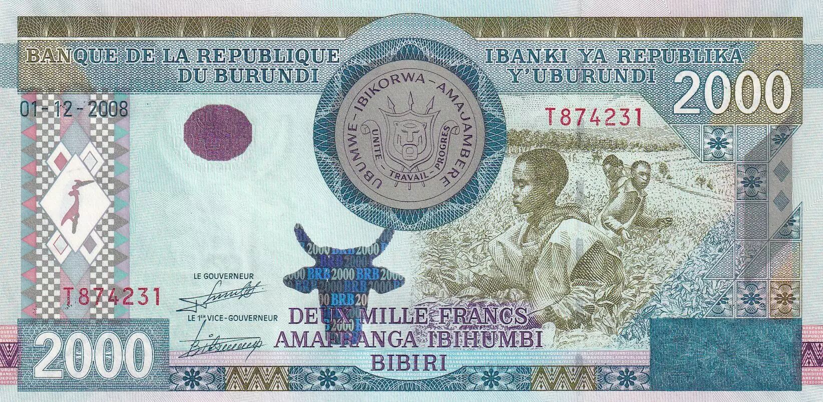 Banknote Burundi 2000 Francs - Agricutlure - Lake - 2008 - P.47