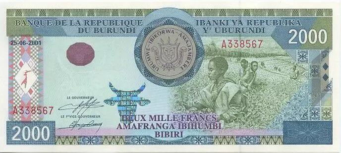 Home > > Burundi 2000 Francs Farmers, lake and dam