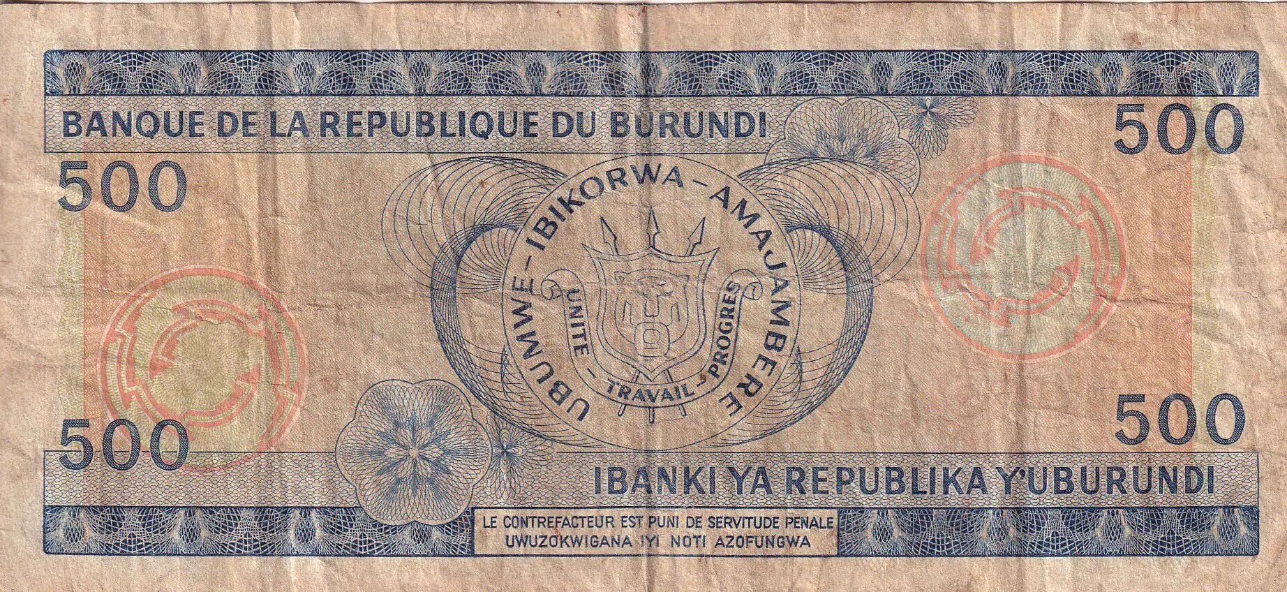 Accueil > Archivage > Burundi 500 Francs - Bâtiment, palmier - Totem - 1988 - P.30c