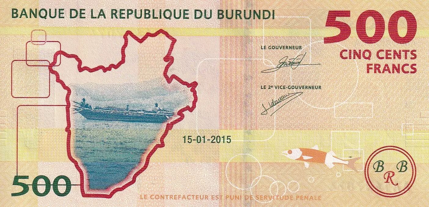Banknote Burundi 500 Francs - Coffee, Crocodile - Map of Burundi - 2015 - Serial AA - P.50