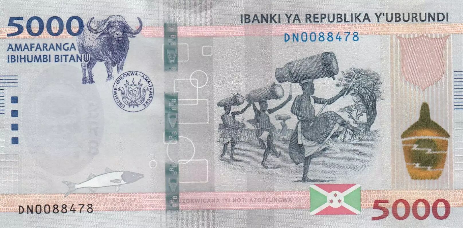 Billet Burundi 5000 Francs - Danseurs - Carte du Burundi - 2022