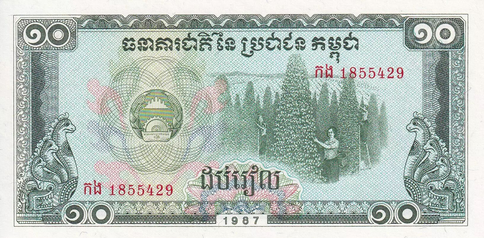 Billet Cambodge 10 Riels - Femme - Caserne - 1987 - NEUF - P.34