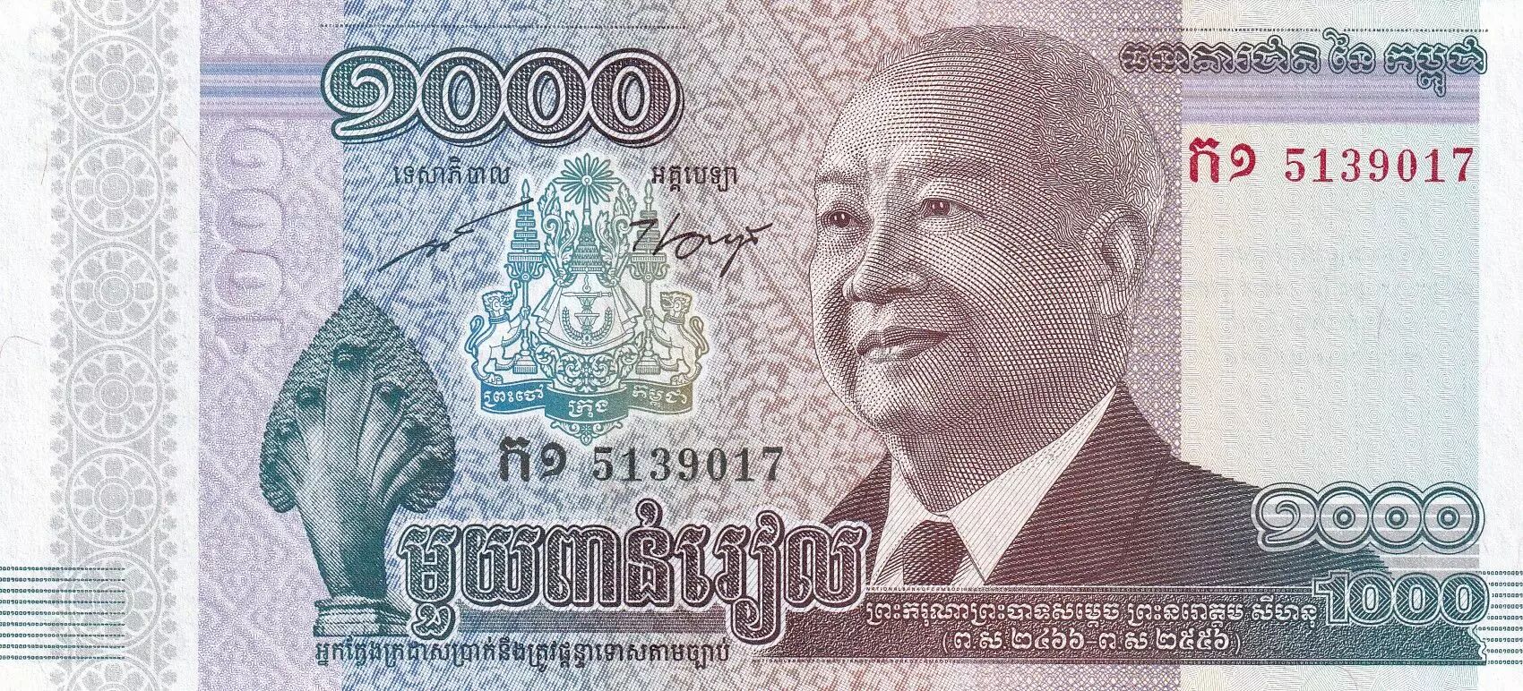 Billet Cambodge 1000 riels - Roi Norodom Sihanouk - Drakkar - 2012 - P.63