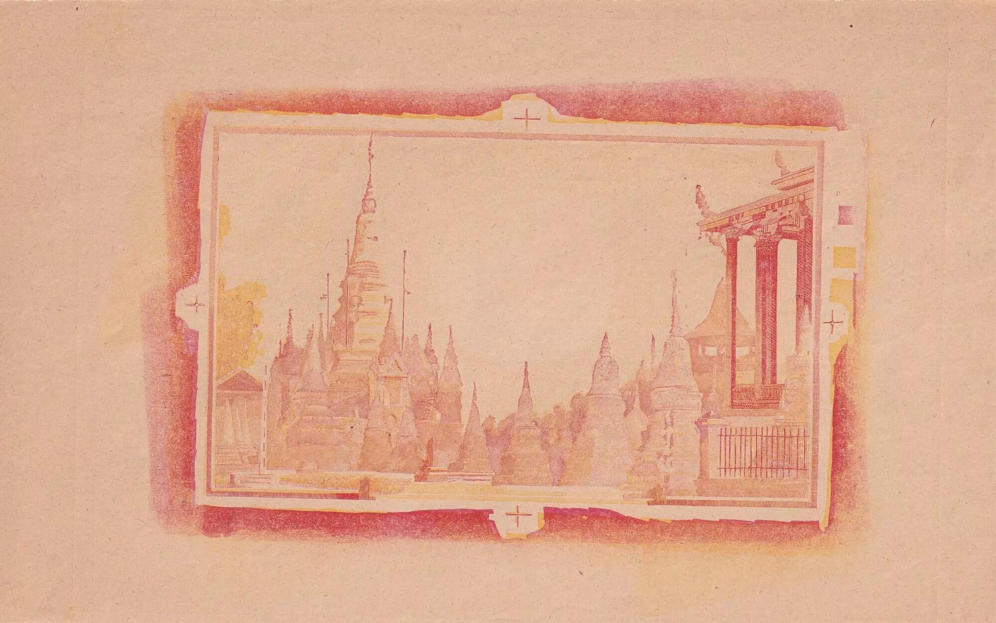 Billet Cambodge 50 Riels - Epreuve uniface Rouge et Jaune du verso