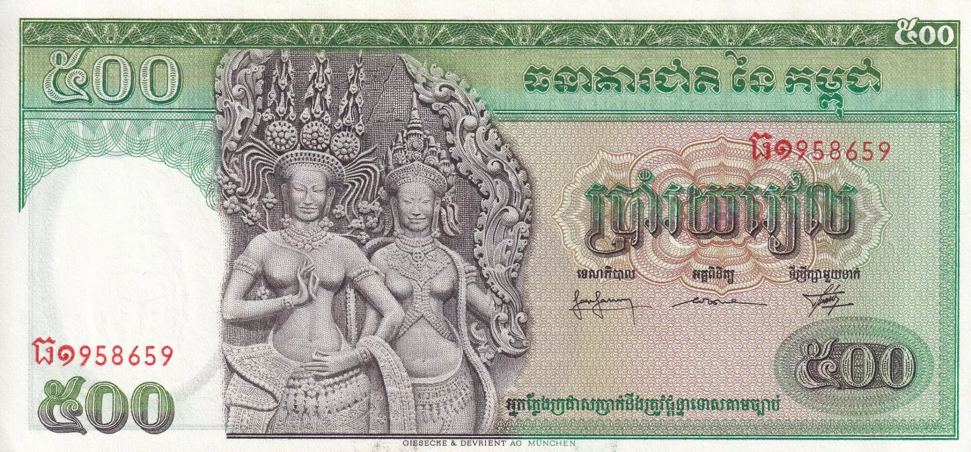 Billet Cambodge 500 Riels - Sculpture - Danseurs - 1970 - P.NEUF - P.9c
