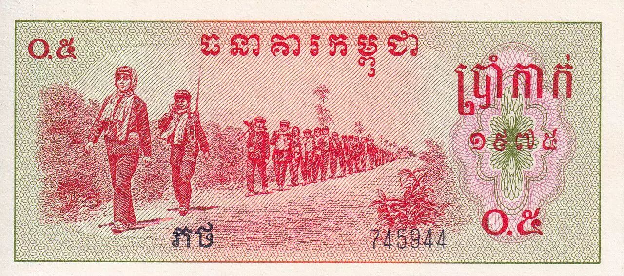 Home > > Cambodia 0.5 Riels (5 kak) - Soldiers - 1975 - P.19a