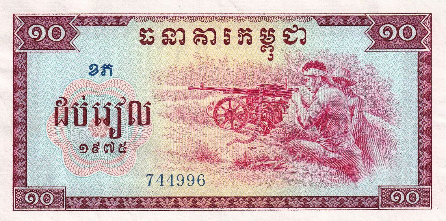 Home > > Cambodia 10 Riels - Soldiers - Agriculture - 1975 - P.22