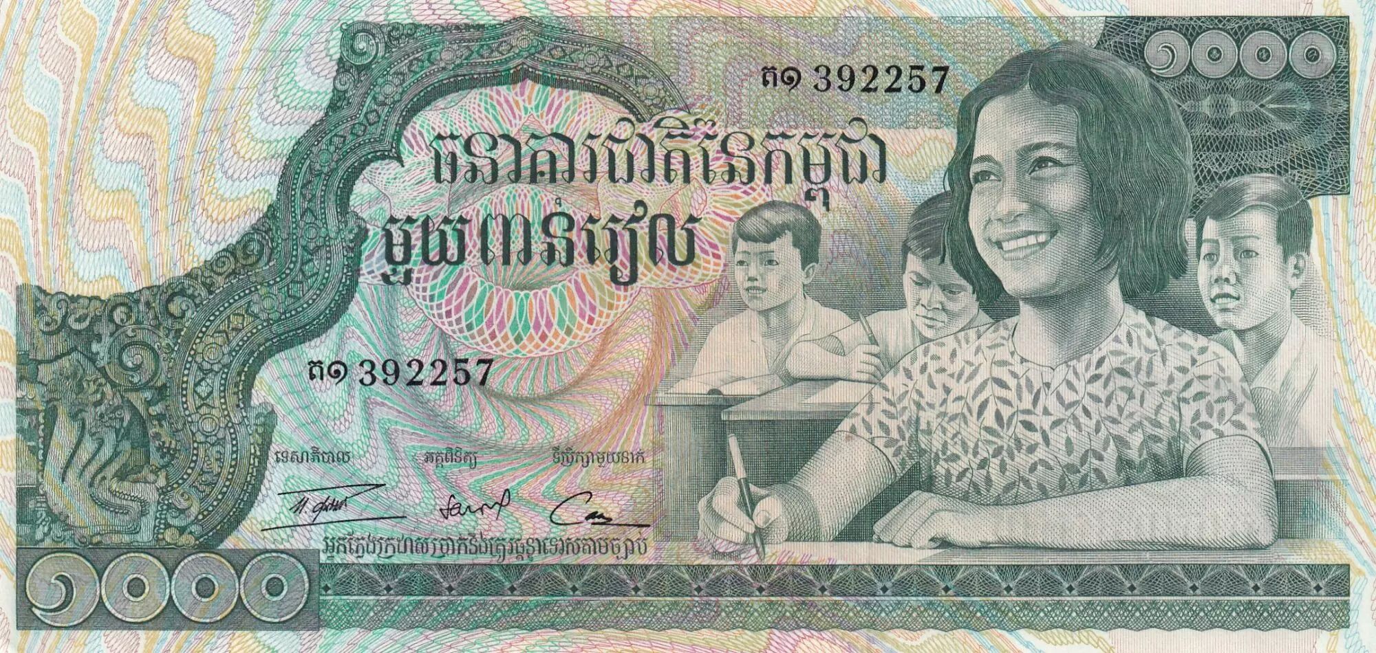 Home > World Banknotes > Asian Banknotes > Cambodia > Cambodia 1000 Riels - Childs - Lokecvara - 1973 - P.17
