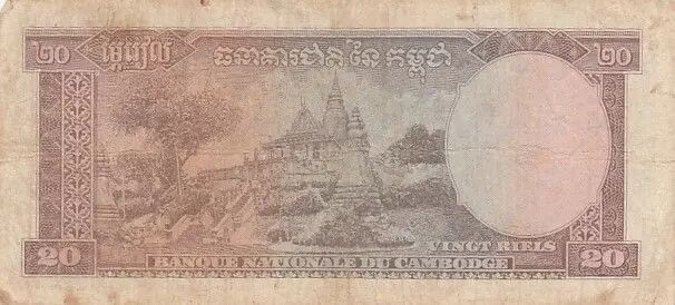 Banknote Cambodia 20 Riels - Harvesting - Pagoda in Phnom-Penh market - ND (1972)