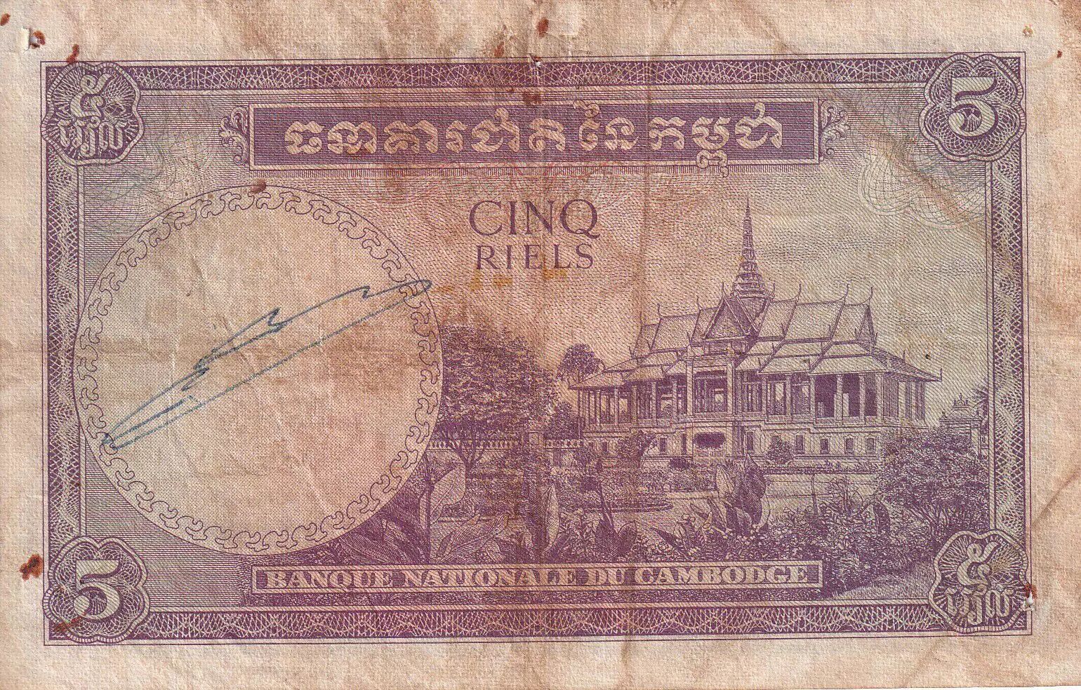 Banknote Cambodia 5 Riels - Monument - Temple - ND (1955) - P.2