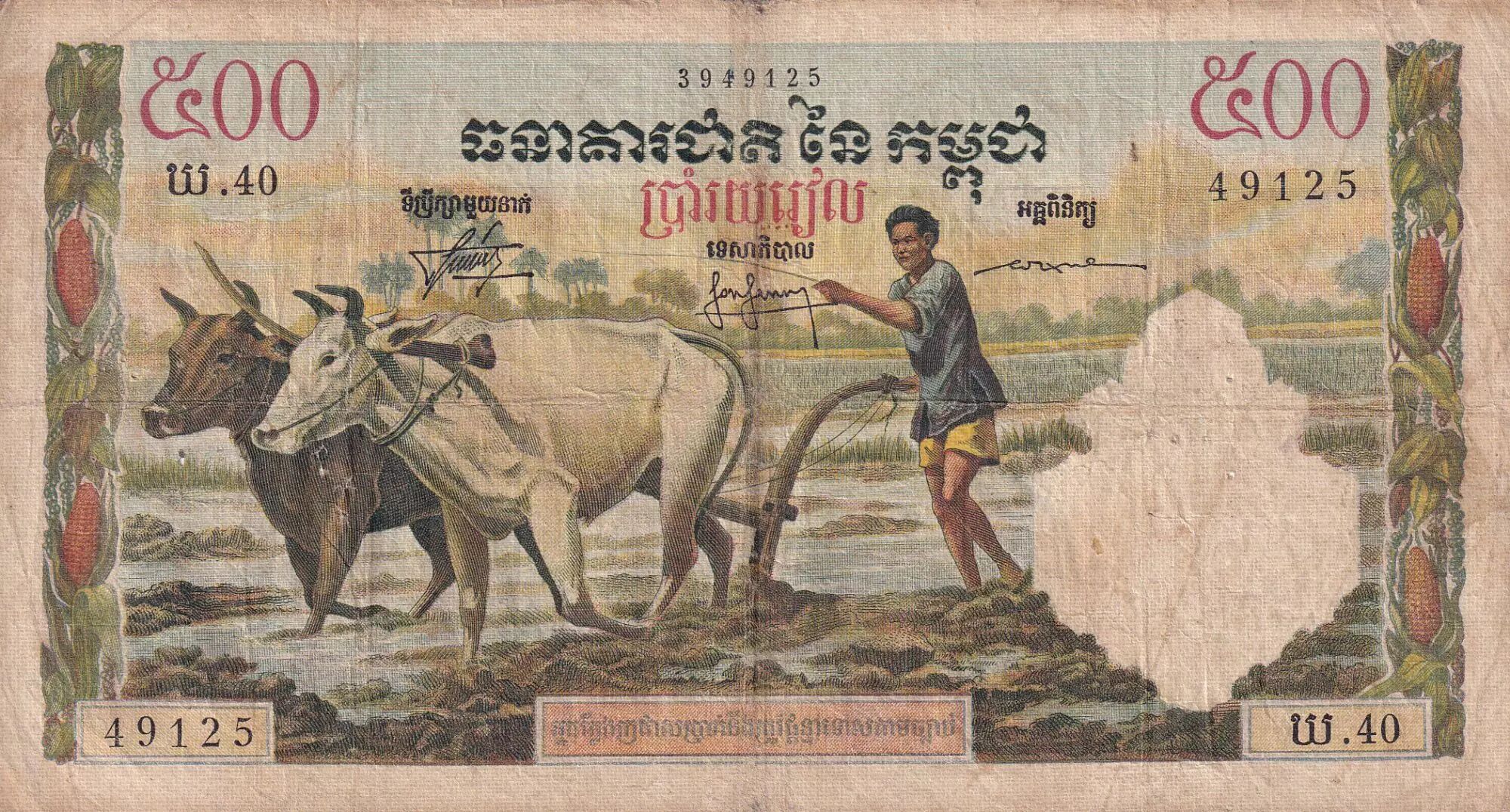 Home > > Cambodia 500 Riels - Agriculture - Temple - ND (1968) - P.14c
