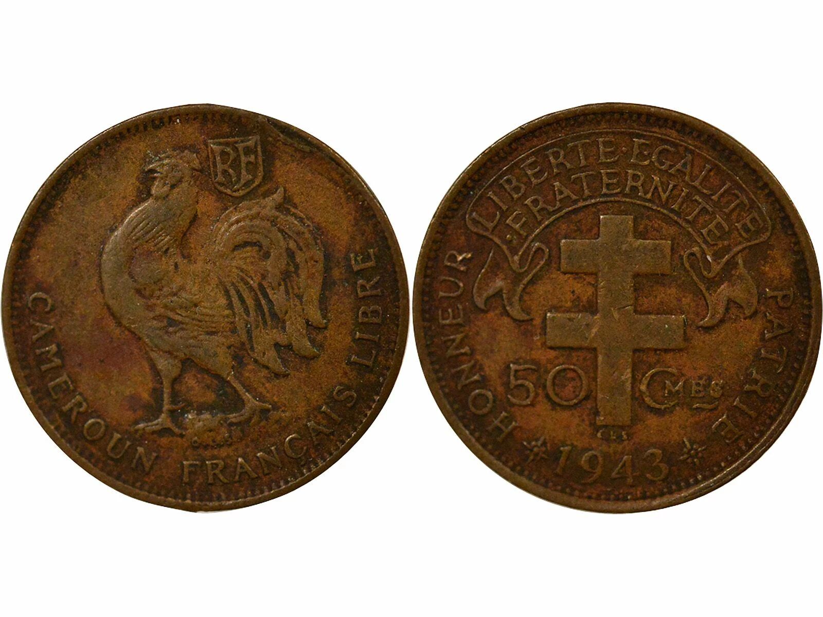 Coin Cameroon 50 Centimes, French Mandate, Free France - 1943 Pretoria