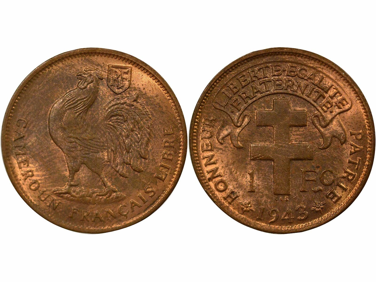 Home > World Coins > African Coins > Cameroon > Cameroon Franc, French Mandate, Free France - 1943 Pretoria