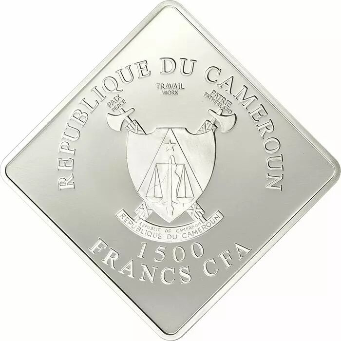 Cette pièce de 1500 Francs CFA consacrée au rhinocéros noir met à l'honneur ces 2 onces d'argent pur avec un plaquage partiel de ruthénium.