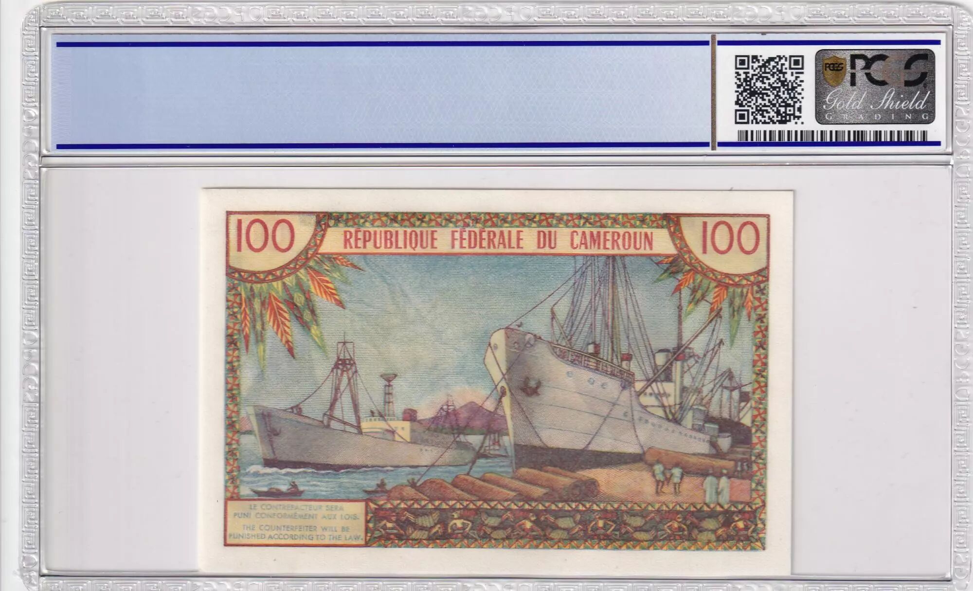 Accueil > Archivage > Cameroun 100 Francs Pdt Ahidjo - Bateaux - 1962 - PCGS 67 OPQ