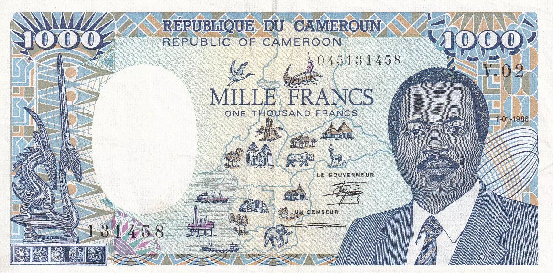 Billet Cameroun 1000 Francs - Carte BEAC complète - 1986 - Série V.02 - SUP - P.26b