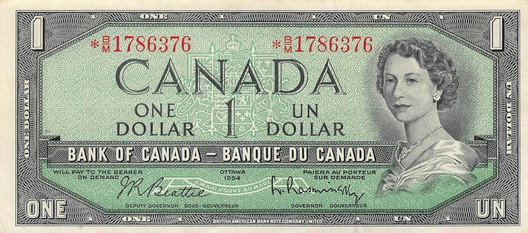 Billet Canada 1 Dollar - Elisabeth II - 1954 - Remplacement - P.75b