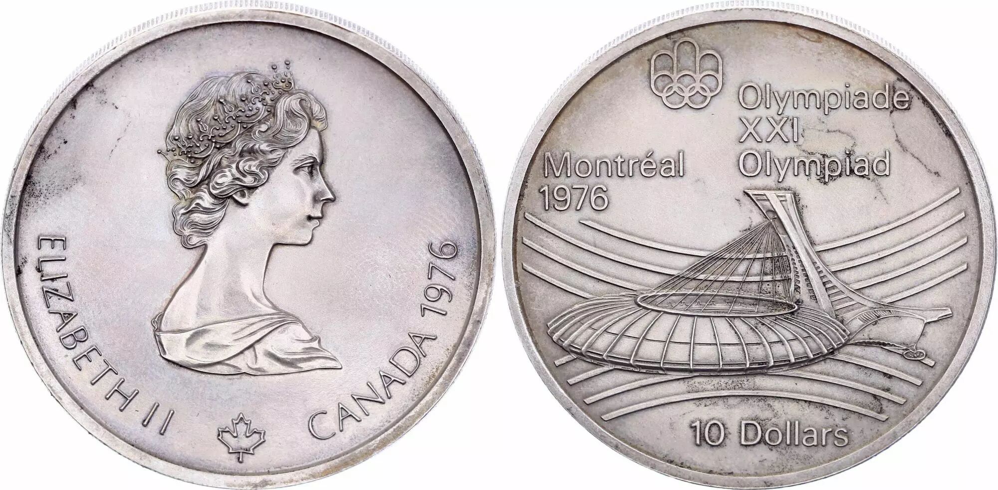 Pièce Canada 10 Dollars, JO de Montréal 1976 - Stade Olympique de Monréal - Argent