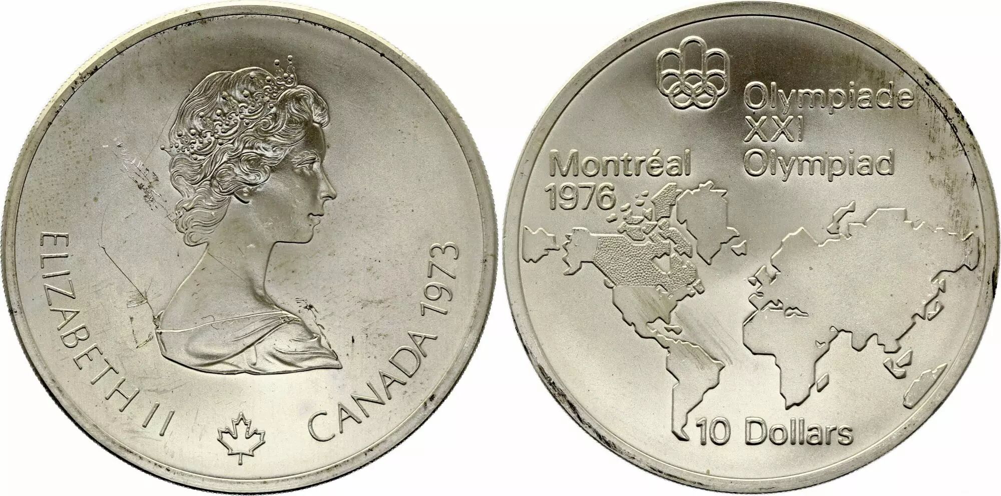 Coin Canada 10 Dollars, Olympics games Montreal 1976 - Map -1973