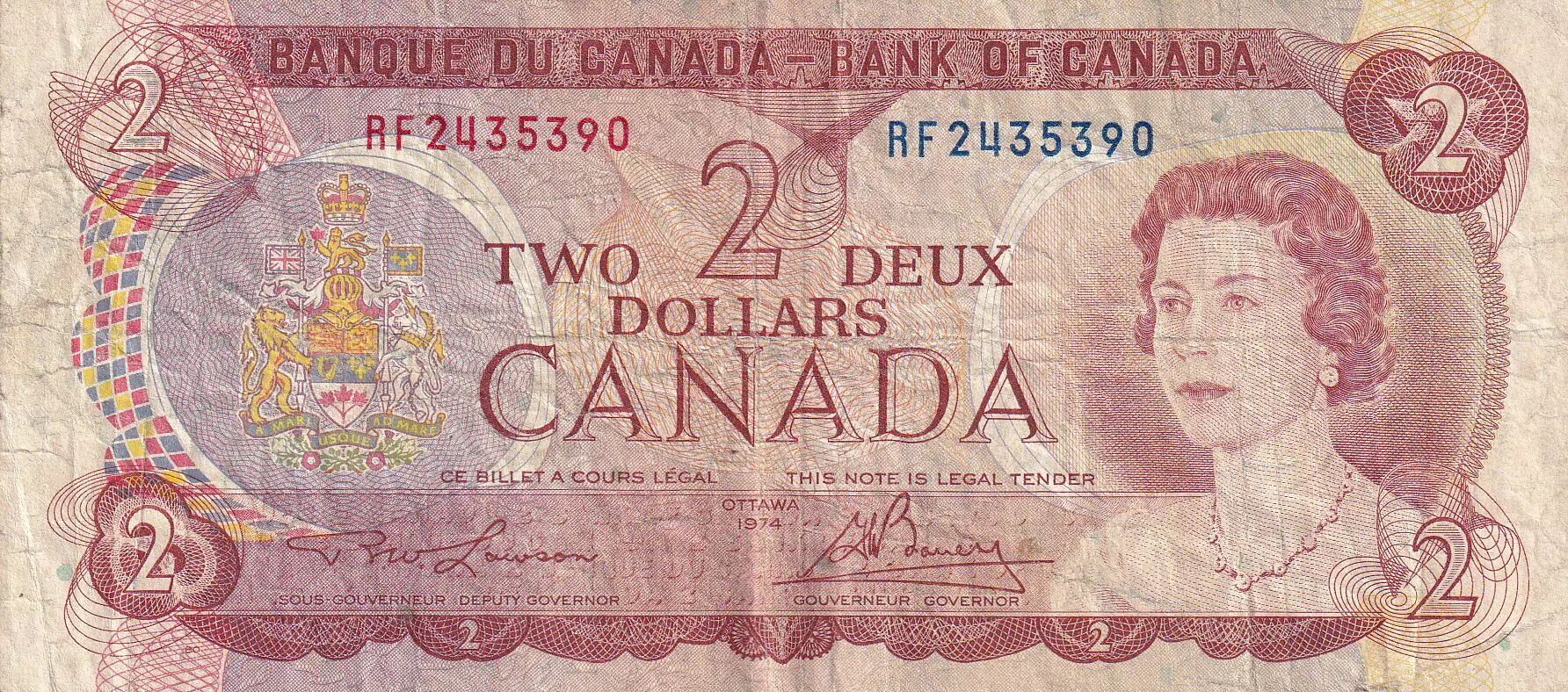 Banknote Canada 2 Dollars - Elizabeth II - Monument - 1974 - F - P.86a
