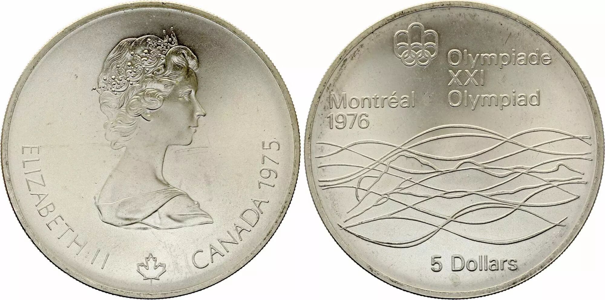 Pièce Canada 5 Dollars, JO de Montréal 1976 - Natation (JO) - 1975