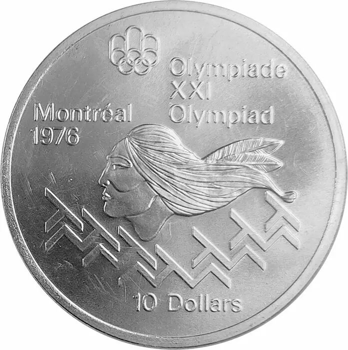 Ces pièces de 10 Dollars ont été frappées par l'Hôtel de la Monnaie royale canadienne de 1973 à 1976 dans le but de financer les Jeux Olympiques de Montréal de 1976.