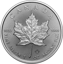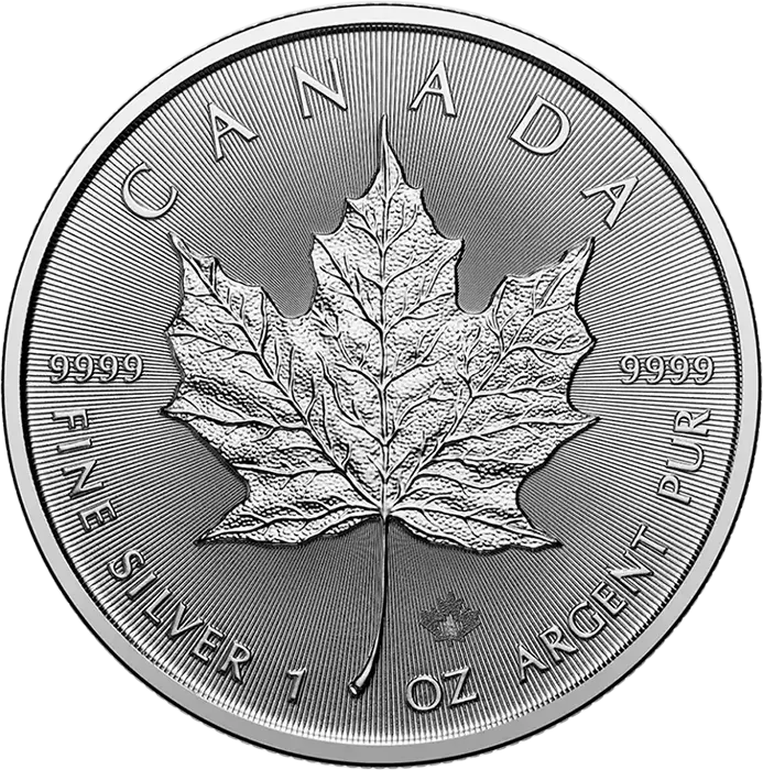 Le revers de la pièce représente une feuille d'érable. Un motif de feuille d'érable microgravé est situé en dessous, sur le côté droit, contenant le chiffre 24 à l'intérieur. Les inscriptions "CANADA", "9999 9999", "FINE SILVER 1 OZ ARGENT PUR" sont également présentes. Le graveur de cette face est Walter Ott.