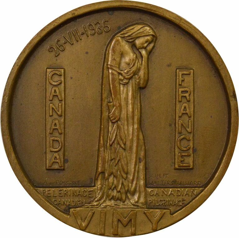 Revers : CANADIAN WAR MEMORIAL ON VIMY RIDGE / IN MEMORIAM SEACINTO MILLIUM CANADIENSIUM / QUI ANNO DOMINI MCMXIV-MCMXVIII ARMIS / VITRA MARE VITAM PRO PATRIA / VITRO DEDIDERUNT